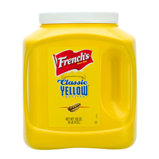 Classic Yellow Mustard - Catering Size. French's Classic Yellow Mustard is made with stone ground, #1 Grade Mustard Seeds and has no artificial colours, flavours or preservatives. No corners cut, no weird stuff, just classic mustard sauce that brings food to life with zero fat, calories or gluten. Crafted by master grinders, their stone ground yellow mustard delivers the smooth texture and tangy taste your customers will love. 12059002