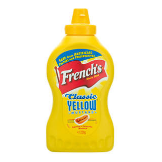 Classic Yellow Mustard. French's Classic Yellow Mustard is made with stone ground, #1 Grade Mustard Seeds and has no artificial colours, flavours or preservatives. No corners cut, no weird stuff, just classic mustard sauce that brings food to life with zero fat, calories or gluten. Crafted by master grinders, their stone ground yellow mustard delivers the smooth texture and tangy taste your customers will love. 12059003